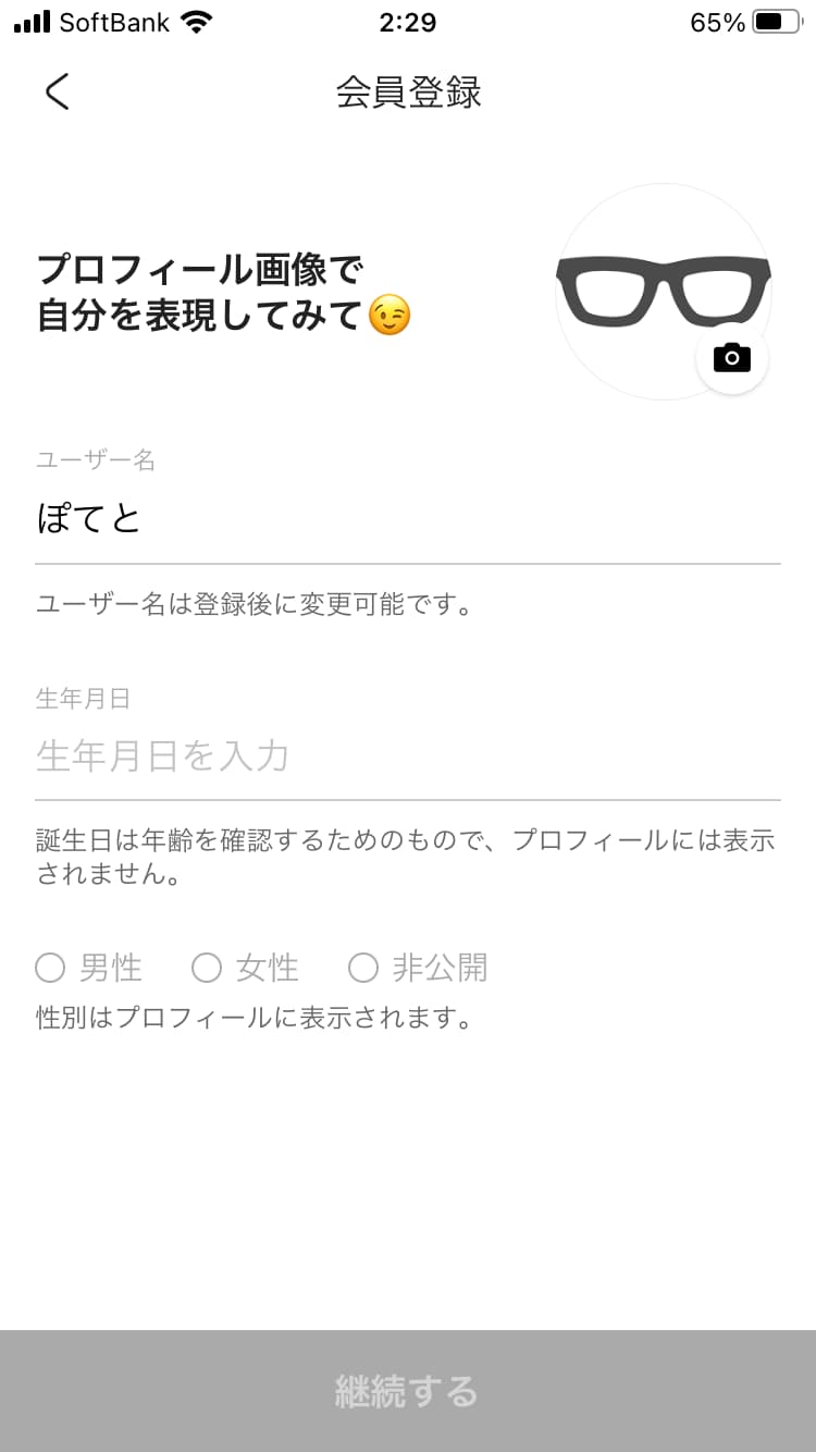 プロフィール登録は「ユーザー名」「画像」「ステータス」の3つを編集することができます