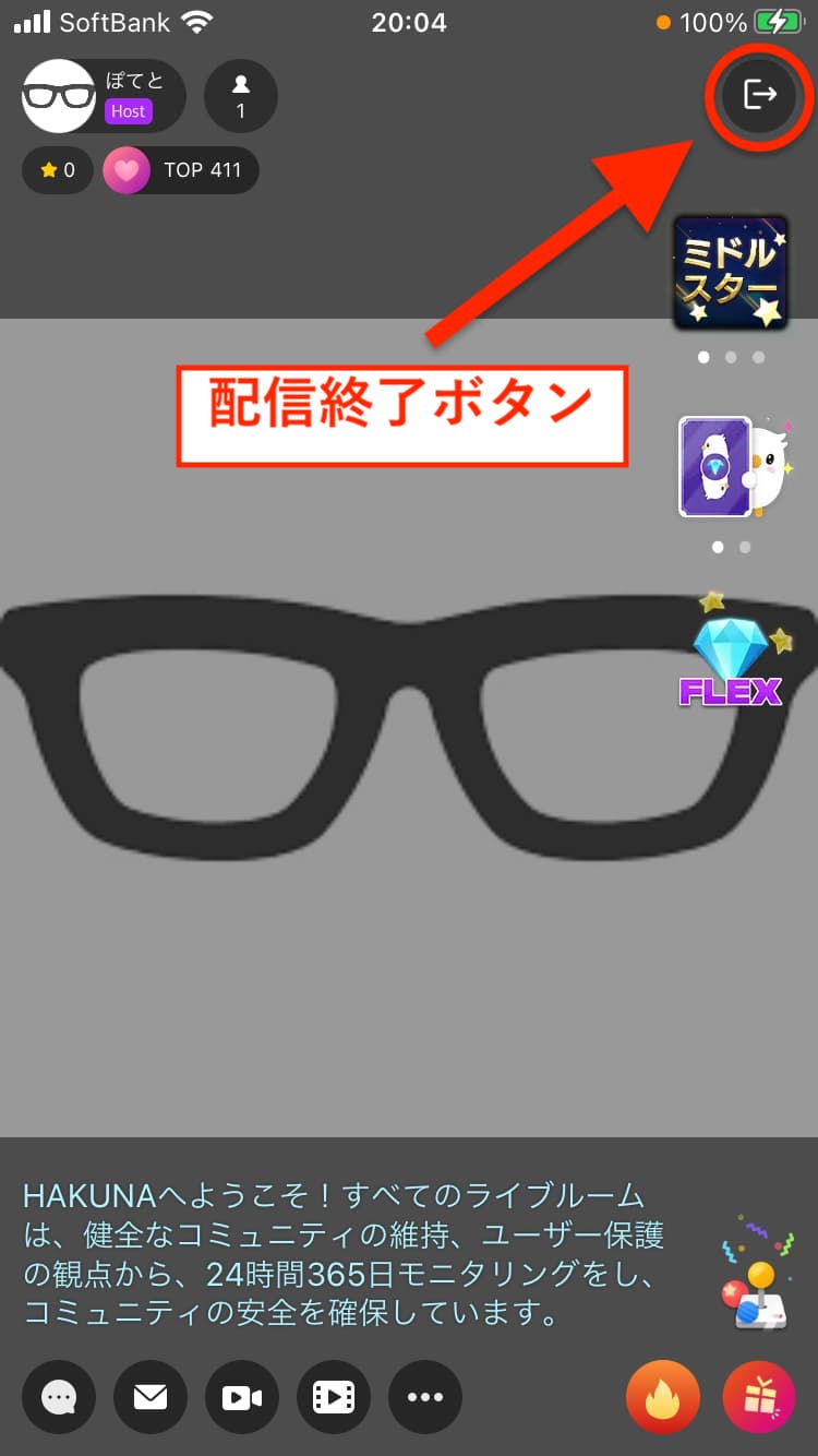 配信を終了する場合は画面右上のマークをクリックして終了してください